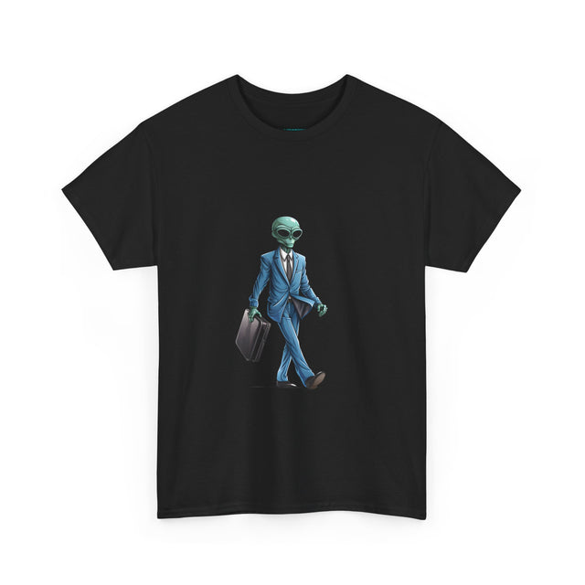 Introducing the "Galactic 9-to-5" T-shirt, a unique blend of style and whimsy for the modern space explorer. This printed tee features a sharply dressed alien headed to work in a suit, symbolizing the universal grind. Crafted from premium materials, it offers comfort for your earthly 9-to-5 while adding a cosmic flair to your wardrobe. Whether you're an office worker or an intergalactic traveler, the Galactic 9-to-5 T-shirt is your ticket to a fashionable workday. Get yours now and embrace the extraterrestrial elegance!